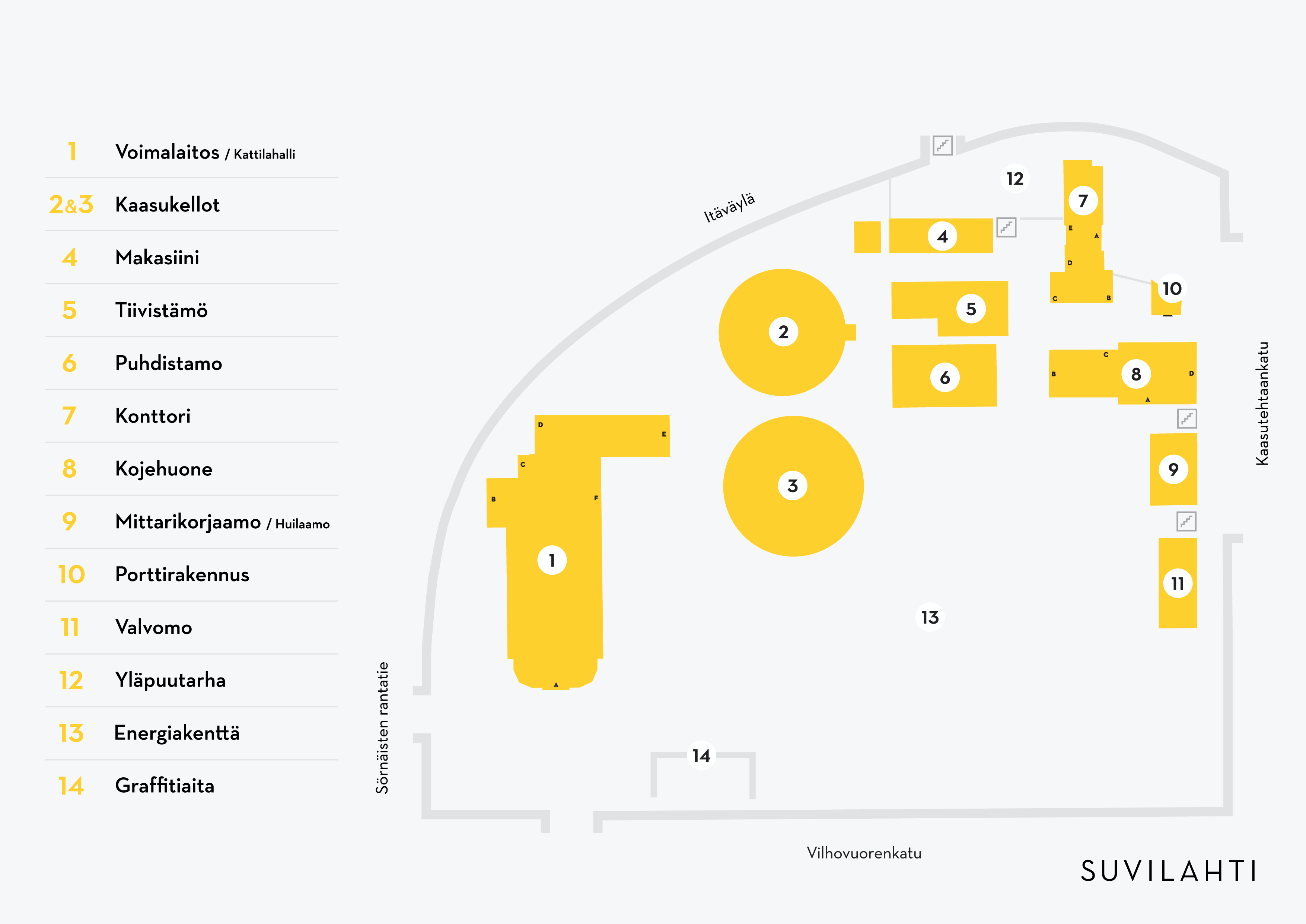 - The use of parking spaces in the area may be limited or the parking spaces may be out of use during outdoor events in Suvilahti. Check the parking possibilities in advance e.g. on the event's own website.
